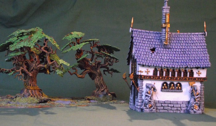 Hence: The Chapel has led to the painting of Kurt Steiff and the purchase of The Congregation (an Empire Free Company). The Wood has led to further work on our Beastman army. When The Congregation is all painted up we have a nice scenario waiting them and the Beastmen. Watch this space.
